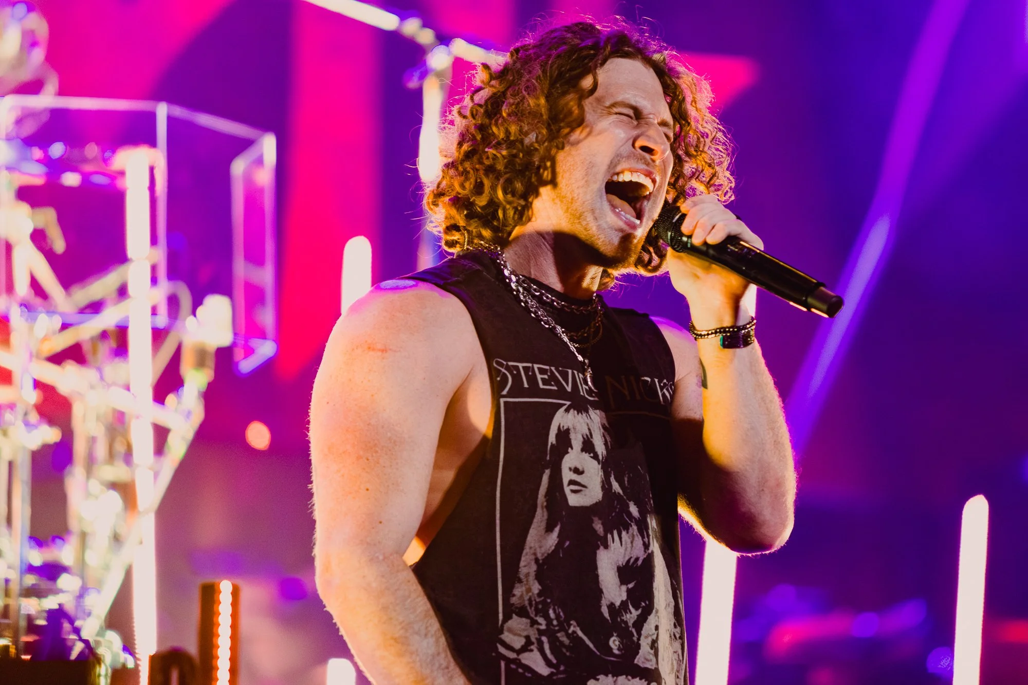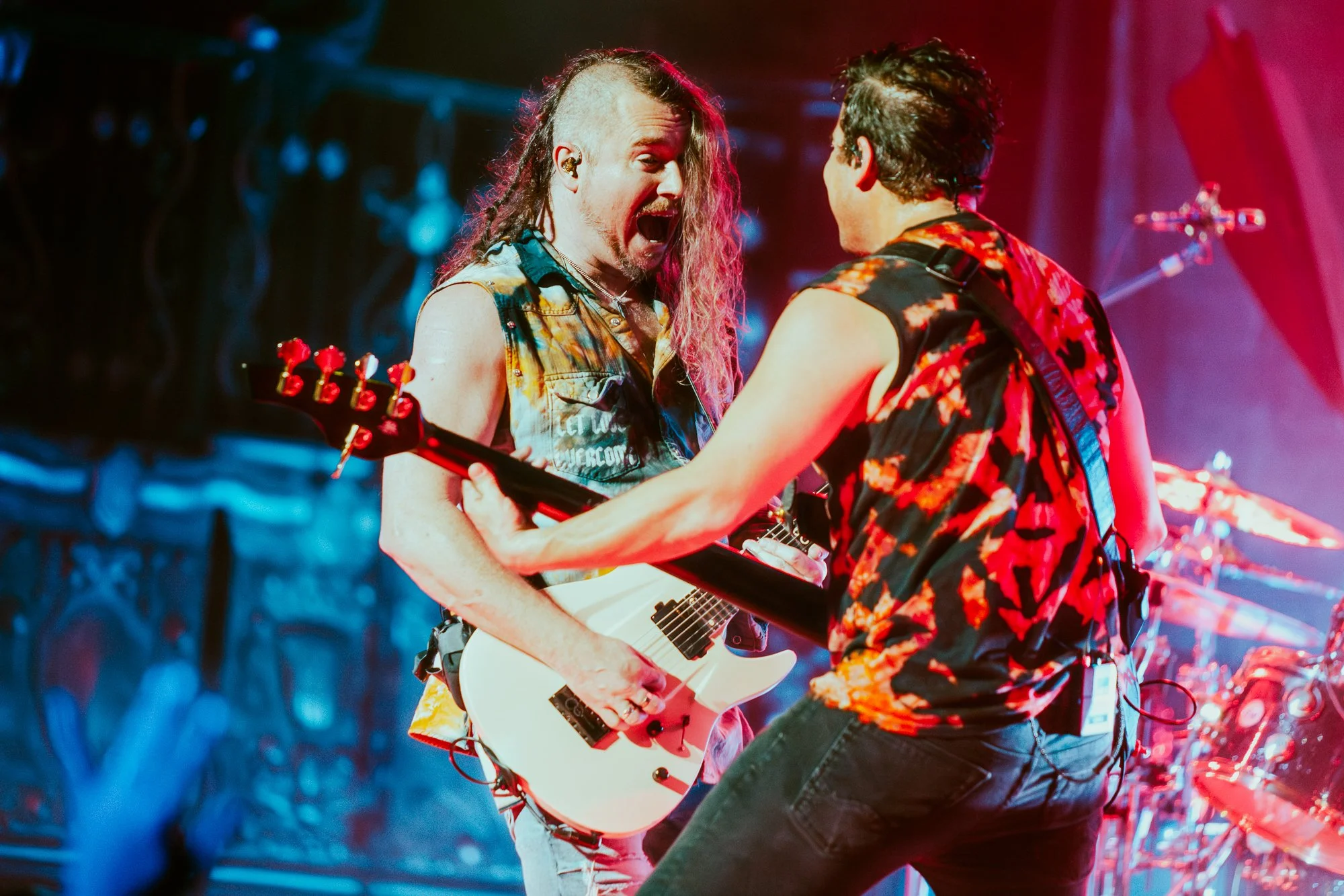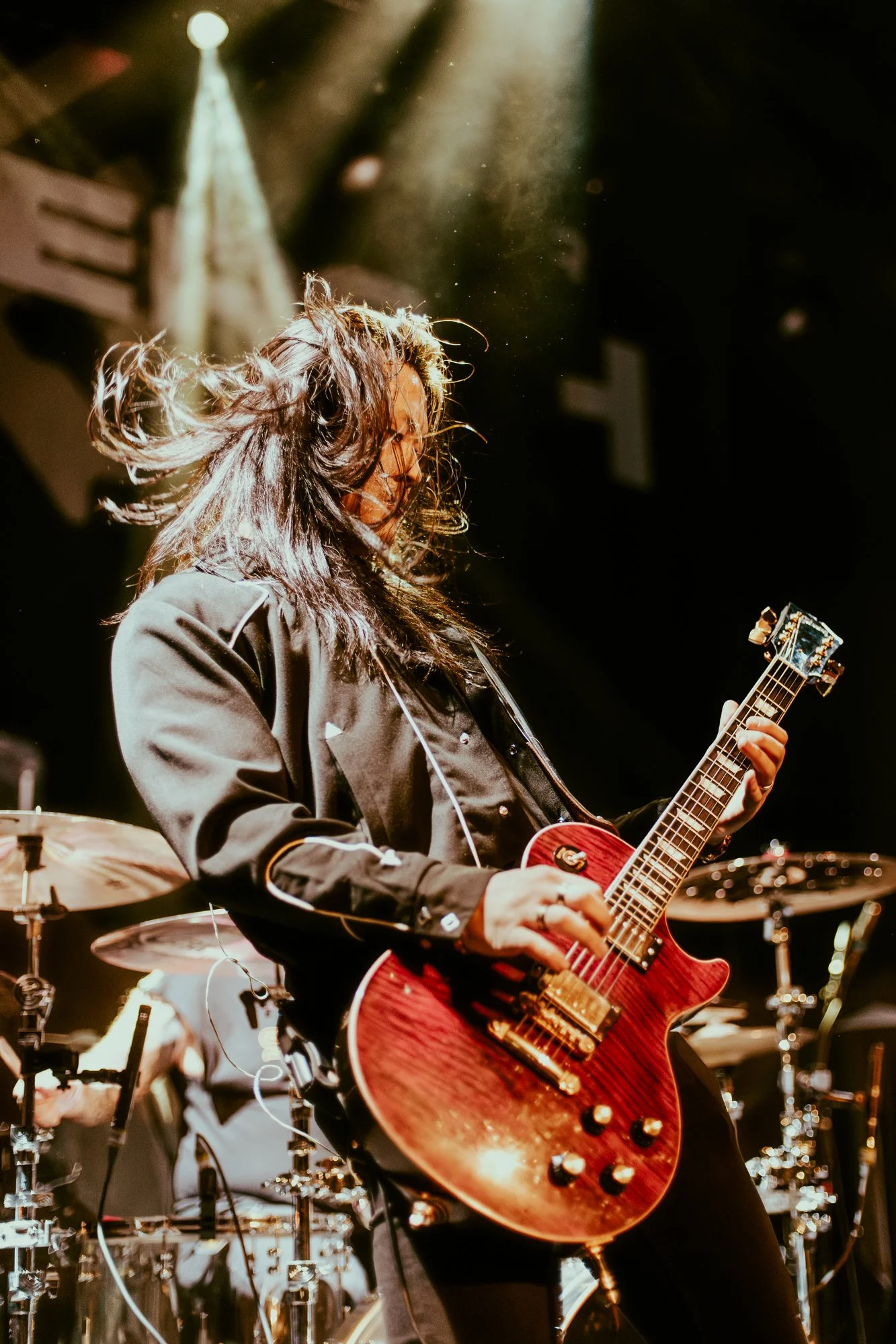 Finally, it was time for Nothing More to take the stage. The band consists of vocalist Jonny Hawkins, guitarist Mark Vollelunga, bassist Daniel Oliver, and drummer Ben Anderson. Formed by Hawkins and Vollelunga in 2003, the band struggled to find their sound and any record label interest due in part to a revolving door of lineup changes. After eight years as their drummer, Hawkins decided he would become the band’s frontman instead, and the rest is history. They finally broke into the mainstream with their self-titled fourth album and subsequent record deal in 2014. Since then, they have toured with the likes of Chevelle, Five Finger Death Punch, Shinedown, Papa Roach, and have been nominated for three Grammy Awards. On stage, the production was bright and colorfully lit, with the drum kit set up on a large platform in the middle for all to see Anderson, instead of hiding him in a dark corner because this band really loves drummers.