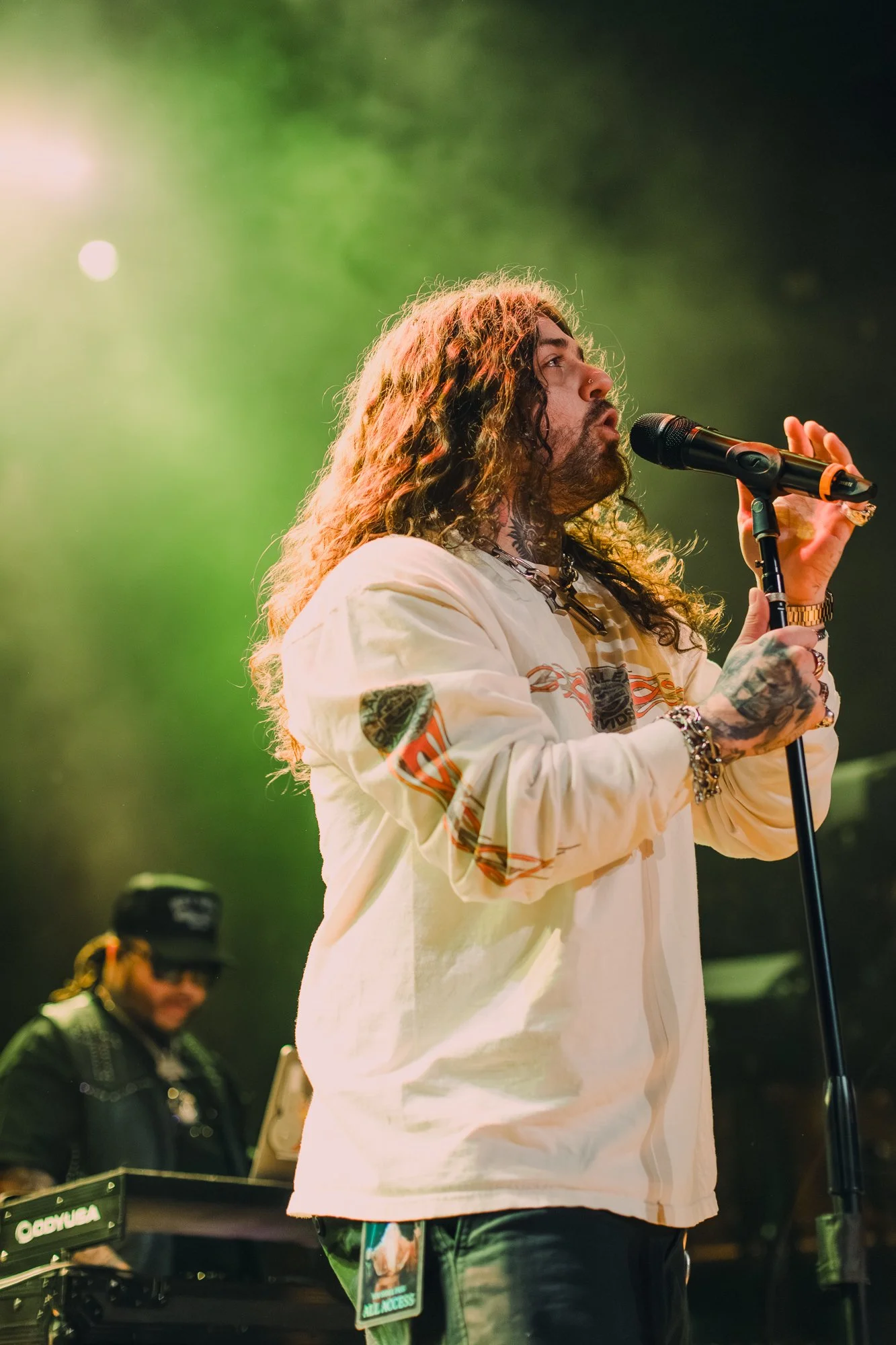 Starting the night off was rapper-turned-rocker Doobie, who has been around in the hip-hop scene since 2016, but only recently has fully embraced his rock and roll influences that have always shown in his music with his first full-length rock album. “Give ‘Em Hell Until You Get to Heaven,” released in 2025, features an earnest cover of Danzig’s “Mother” as well as collaborations with Nothing More frontman Johnny Hawkins, Saliva’s Josey Scott, and Yelawolf. On stage, Doobie thanks everyone for coming early, talks about how much he’s always loved rock music, and introduces his band before launching into the Danzig cover with the crowd singing along. Even though it was early and the first set of the night, Doobie got everyone grooving with him.