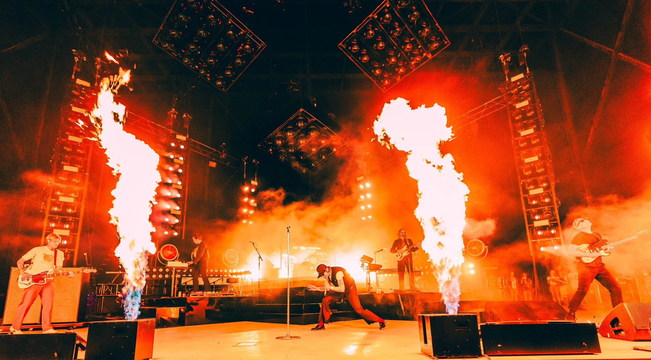Finally, the moment everyone had been waiting for arrived as Cage The Elephant stormed onto the stage amidst a dramatic display of flames shooting high into the night sky. Their explosive opening to the night began with “Broken Boy” from the first chord, the band's energy was palpable and the crowd erupted with screams and cheers. With a setlist that included tracks from their newest album "Neon Pill" alongside fan-favorite classics like Melophobia, Cage The Elephant delivered a high-octane performance that had everyone jumping, dancing, and singing at the top of their lungs. The seamless blend of new and old songs showcased their versatility and ensured that every fan left wanting more, marking the first show of their tour as an unforgettable night and celebration of classic alternative music.